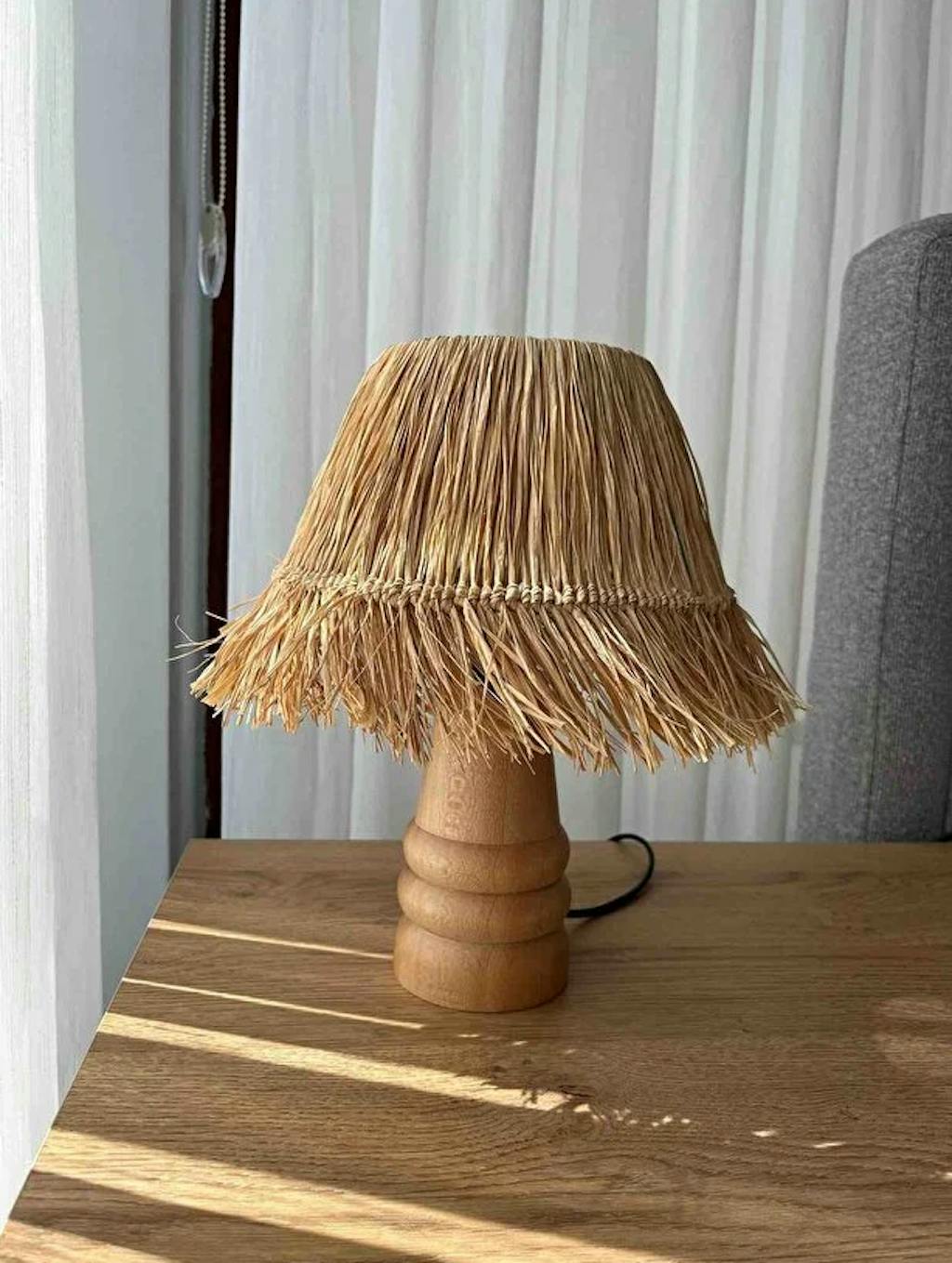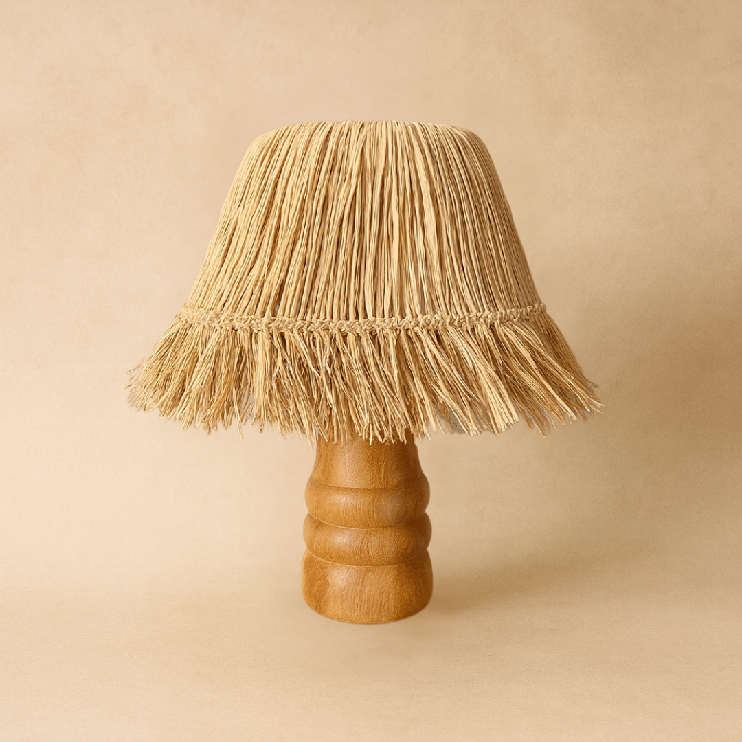 Saçaklı Doğal Rafya Abajur