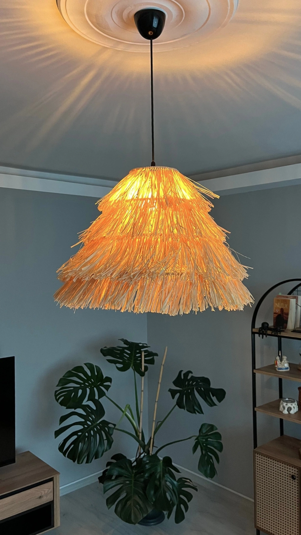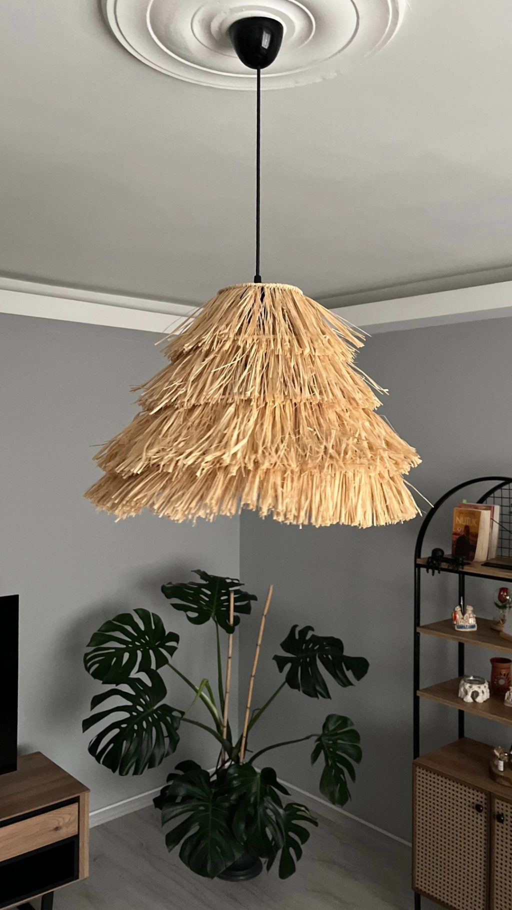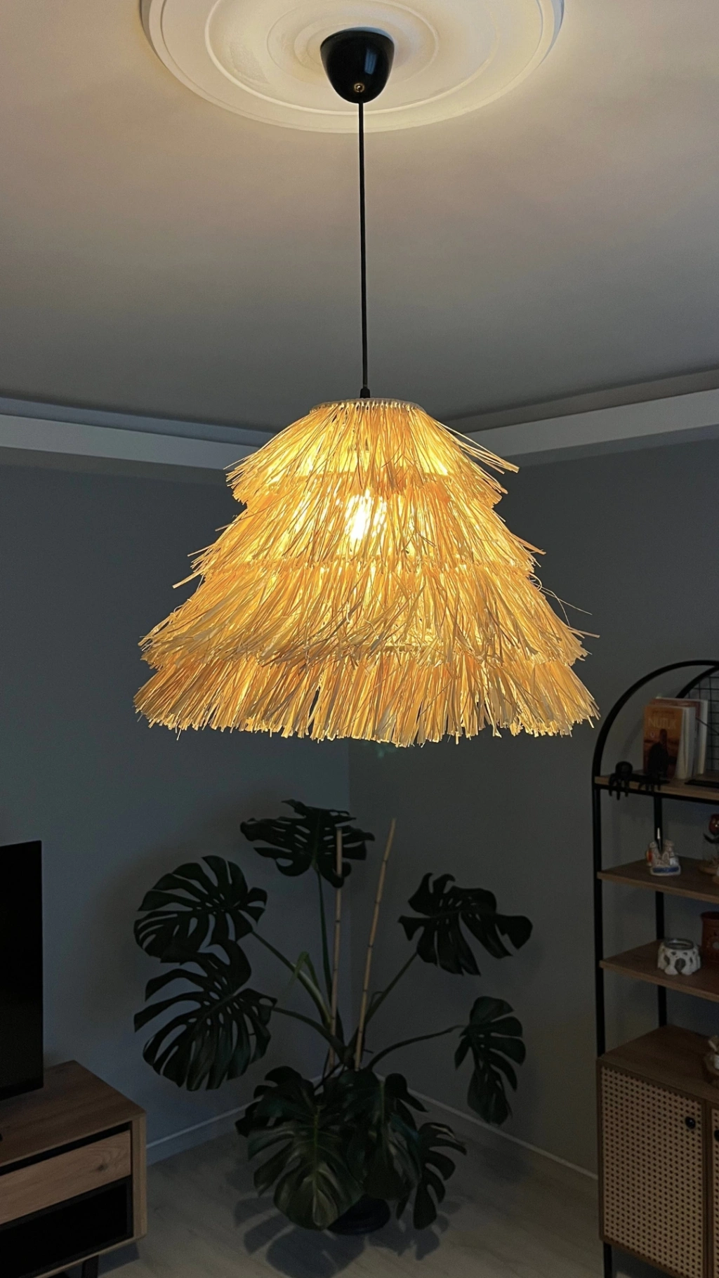 - Malzeme: Doğal Rafya, Demir İskelet, Sarkıt Duy